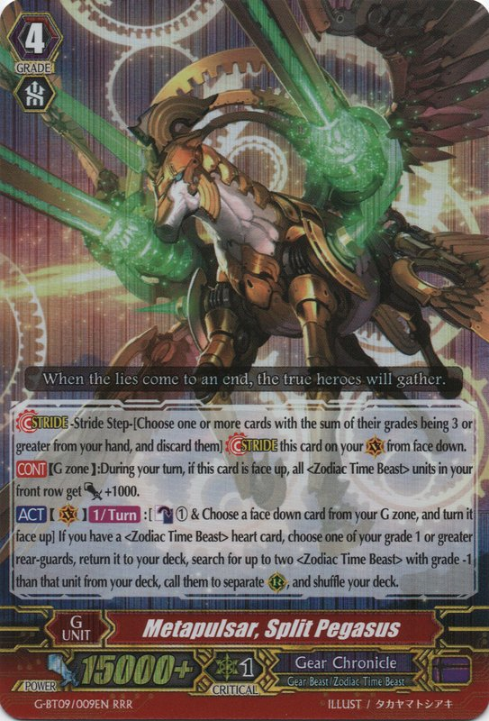 This comes into play with the main key cards in the deck: Split Pegasus and Chronojet Dragon G. Both power up your ZTB rearguards and fix your field. With Split Pegasus and Chronojet you can make very solid, strong boards without using a single card in hand. It's very, very powerful and two particular combos allow you to field three rearguards very easily and very quickly. More on that in the combos post which will come sometime in the future.