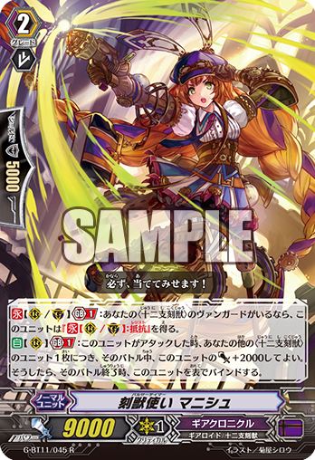 What makes this a great card is its ability to be abused by Huang-long, and by extension HuangStage. Attack, Bind itself, call with Huang-Long, attack again. Heck, this can be utilized in Time Leap as well. With only Groovy(HuangStage) as your other ZTB, this hits for 11k. Mannish then can itself, then call it back at end of battle with Groovy or Huang. After that, if you have a 7k booster for it and 6 units face up in the GZone your fresh Manish column hits for 21k. Manish is just an amazing card with so much utility.